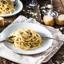 Cacio e Pepe means cheese and pepper in Italian. As the name suggests, cheese and pepper are the main ingredients of this classic Roman dish. It is Italian comfort food at its best and all you will need is Parmigiano Reggiano, Pecorino, freshly ground black pepper, spaghetti, butter, olive oil and salt. If you’re anything like me, you already have all those things in your pantry/fridge.