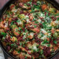 Even the pickiest eaters will love these cheesy Brussels sprouts, caramelized to perfection and topped with spicy chorizo and a whole lot of Manchego cheese. Believe me, those nasty boiled Brussels sprouts that you used to eat as a child have nothing on this unbelievably delicious gourmet side dish!
