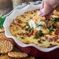 I simply know this dip will be your new favorite appetizer. And not just because it is one of the most delicious dips out there, but also because it couldn’t be easier to put together! Seriously, all you gotta do it combine the ingredients and then bake until golden brown and bubbly. What’s easier than that?