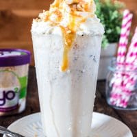 Looking for a way to satisfy your cravings without all the guilt? This Salted Caramel Frozen Yogurt Milkshake will definitely do the trick! Because healthy and indulgent go amazing together. ?
