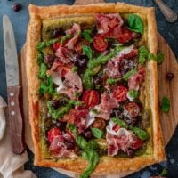 Perfect for last-minute entertaining, this Prosciutto Puff Pastry Tart is really easy to assemble and always a crowd favorite! Bursting with lots of different flavors and textures, this tart will become your go-to appetizer for the holidays.