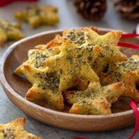 Make your holiday appetizer table extra festive with these cute star bread chips! Insanely easy to make, they will be a great addition to any cheeseboard or a fun base for canapés.